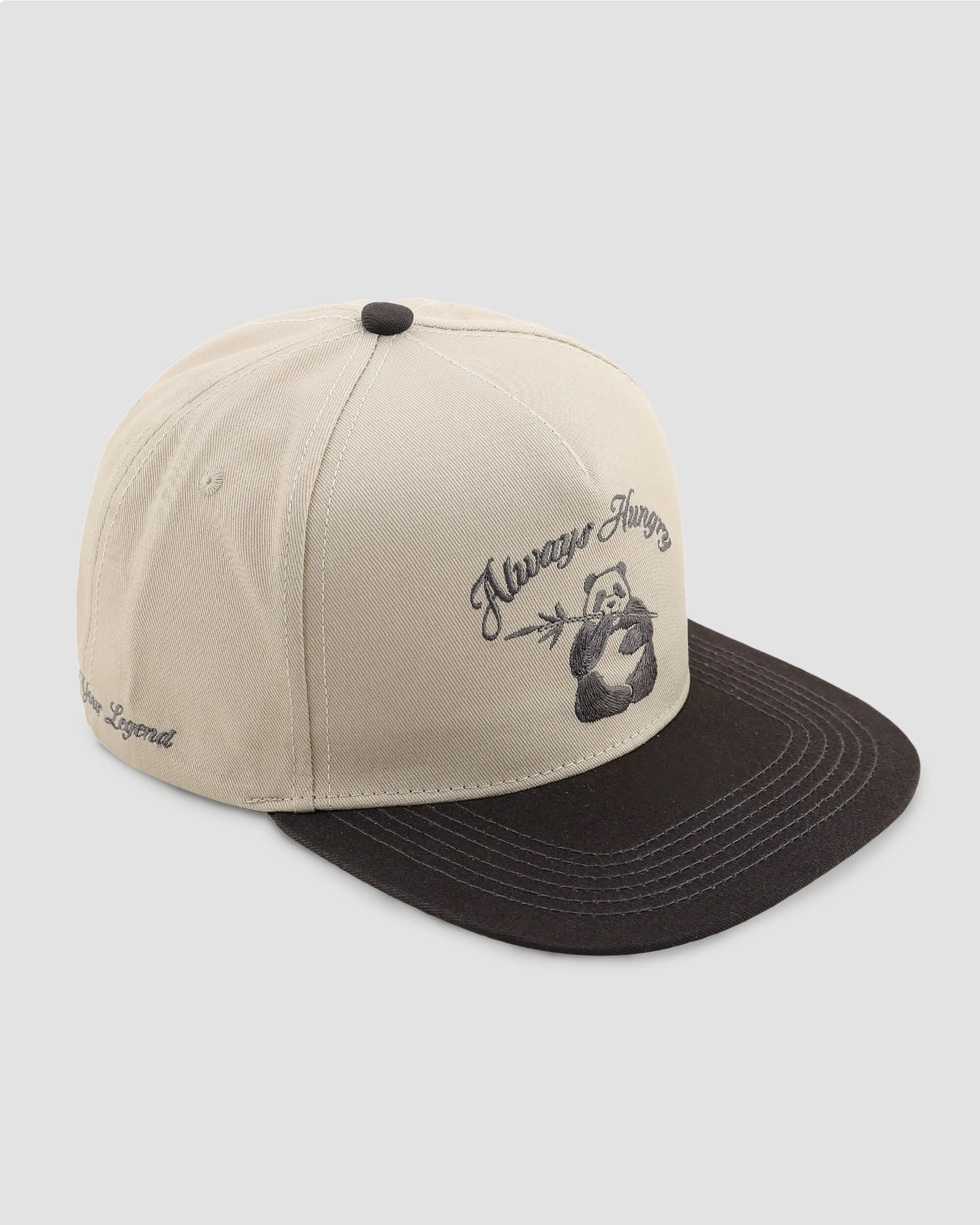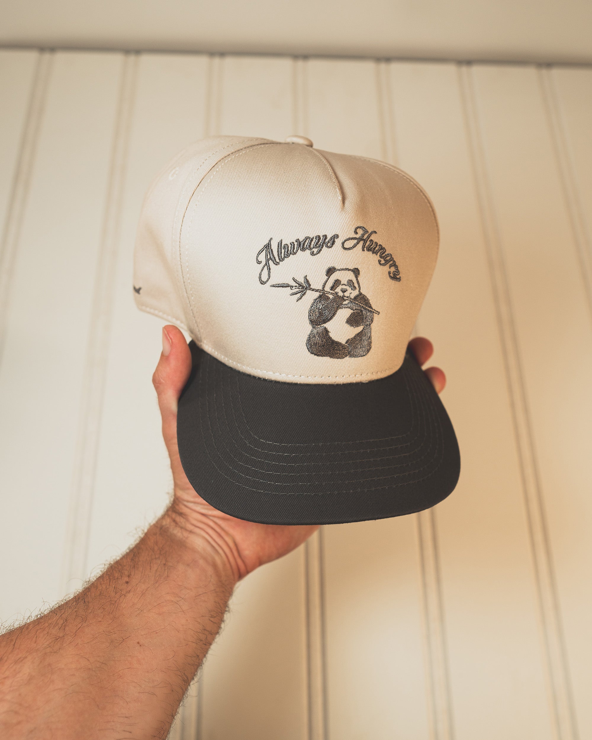 Our Always Hungry Hat features an embroidered design of a hungry panda. Did you know pandas can eat up to 80 pounds of bamboo in a day? We’ve partnered with Pandas International to help save and protect pandas.