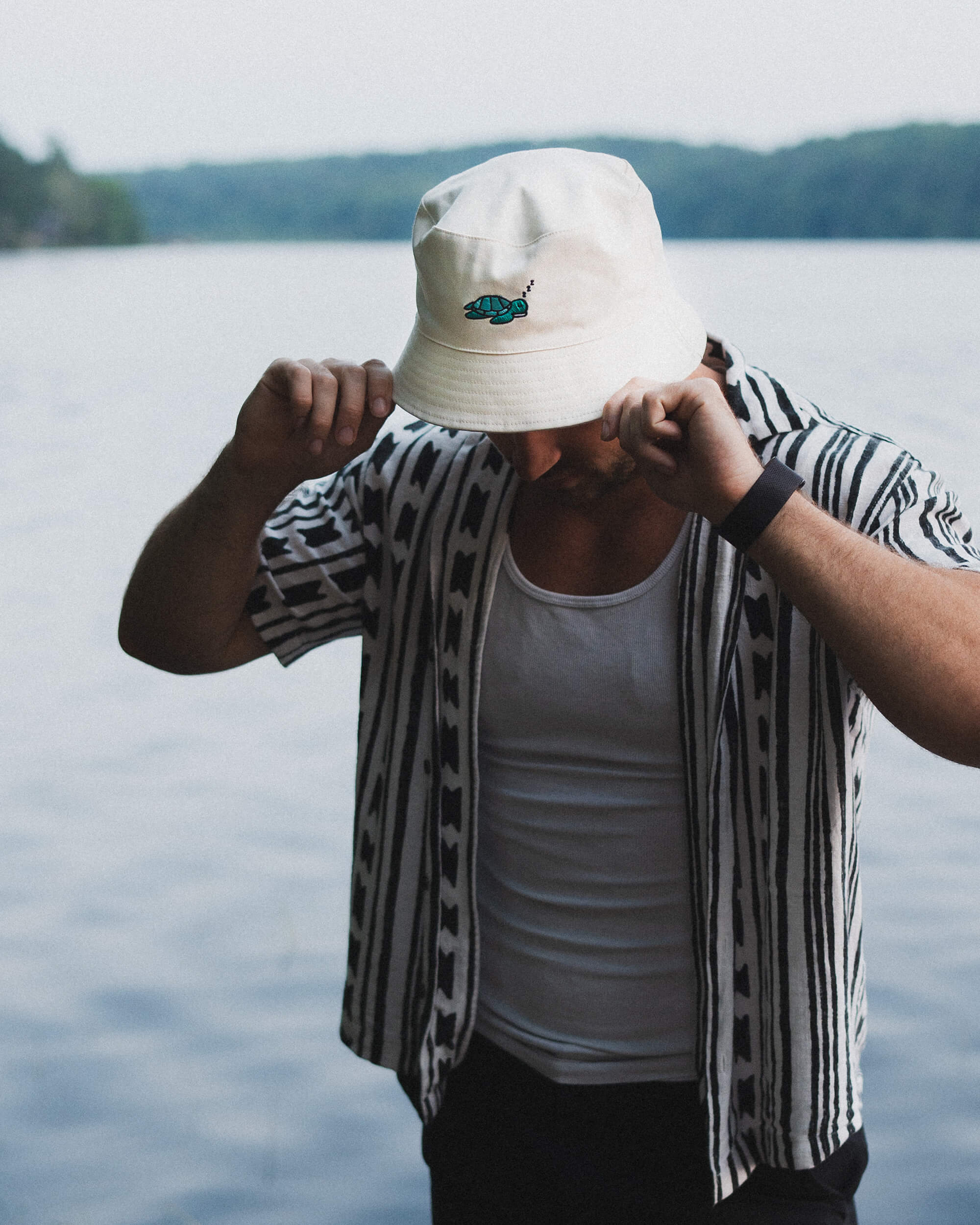 This fully reversible bucket hat features Sam the Sea Turtle, he loves a good nap in the sun.
