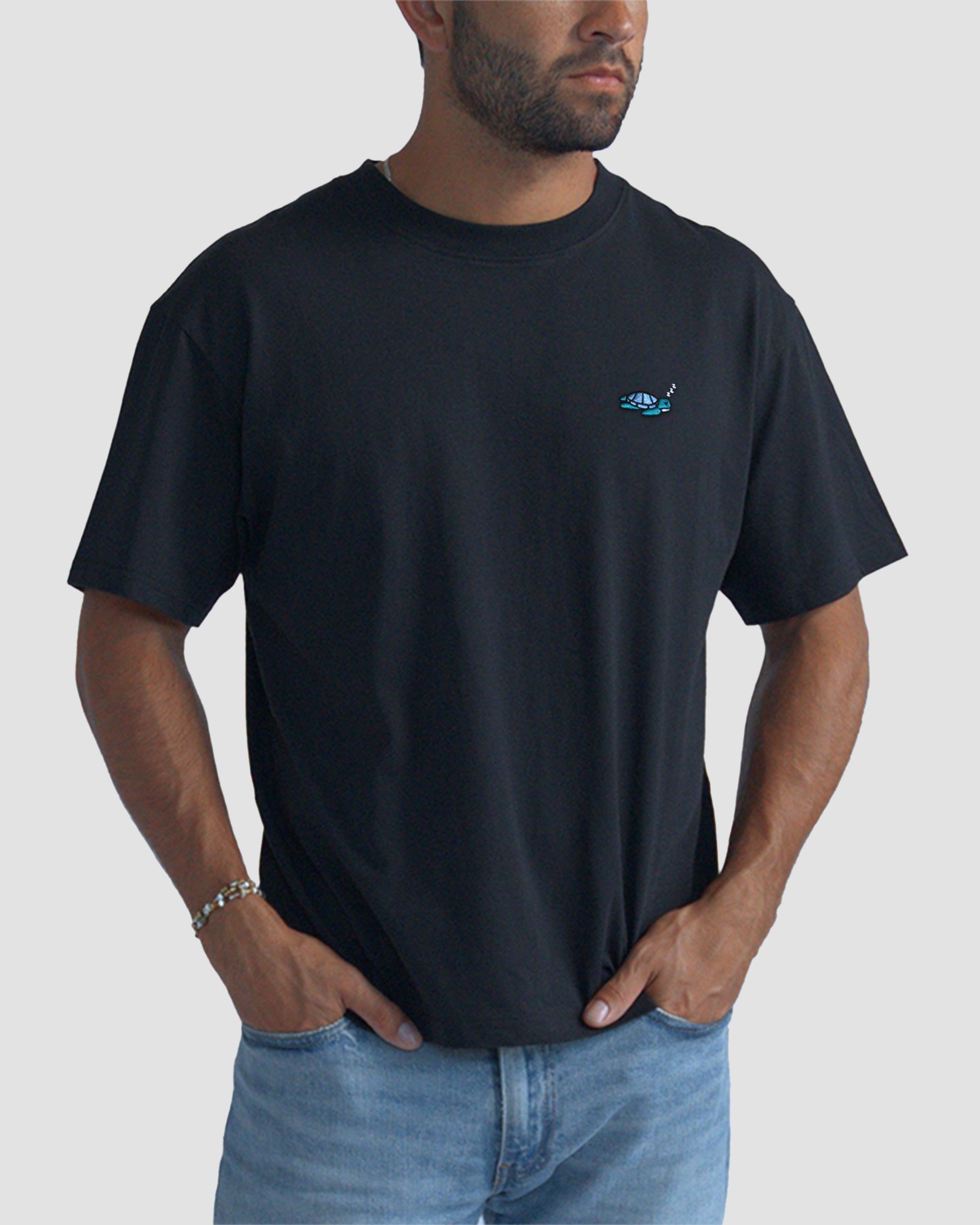 Tap your phone to the embroidered sea turtle, and read stories of real life sea turtles you're supporting. Designed to outlast trends, this is more than just a tee—it's a commitment to a sustainable future.